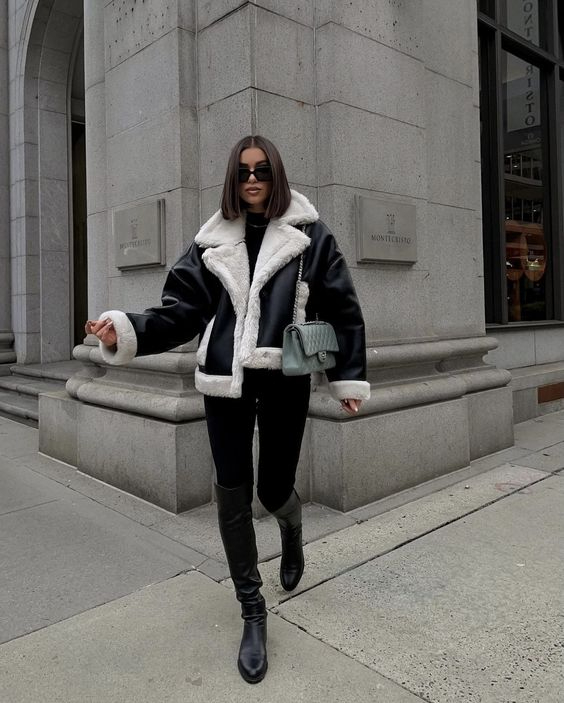 I love wearing shearling-lined jackets during the winter season. They are not only stylish but also keep me warm and cozy. Pairing them up with leggings and chunky boots completes the look, making it cute and casual. It's a perfect outfit for a day out with friends or a casual walk in the park.